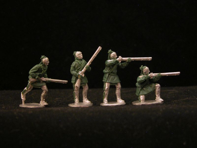 The British in Saratoga uniforms and their Mohawk Indian allies were added to the Fife and Drum figure range in early 2020. The figures were sculpted by Richard Ansell. Below are some representative "greens" of some of the new figures. The British are available as center company and flank company figures in marching poses as well as in skirmish poses. Highlanders for the same campaign are also available. The Mohawk have firing poses and melee weapons poses.